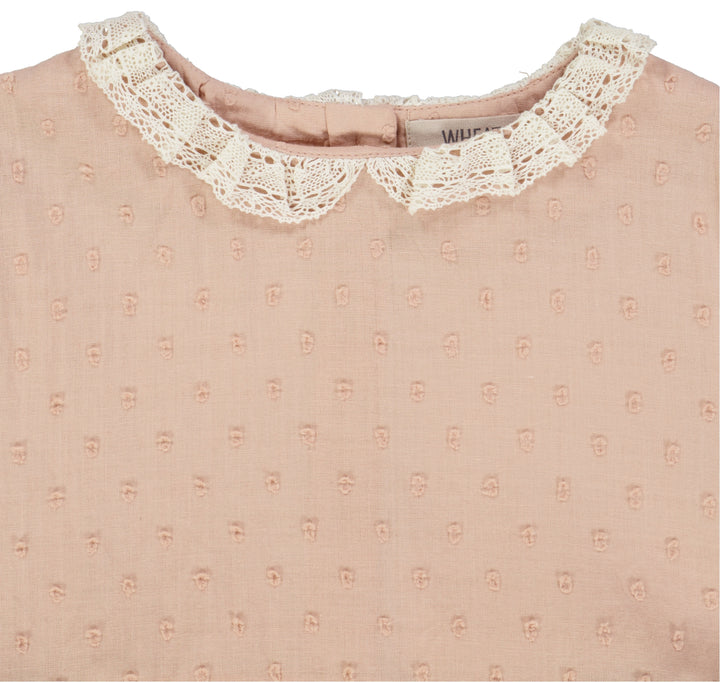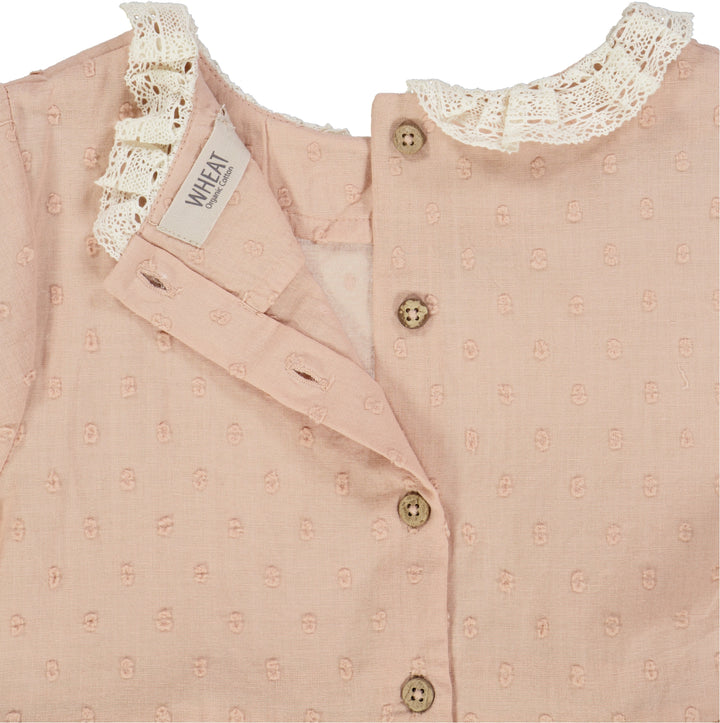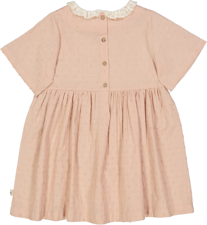 Süßes kurzärmeliges gepunktetes Kleid aus weich gewebter Bio-Baumwolle für Kinder.