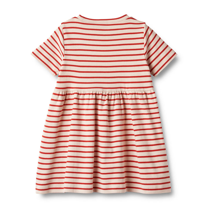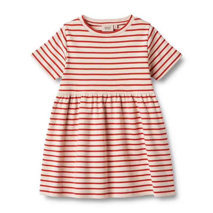 Kurzärmeliges Jerseykleid mit Streifen aus weicher Bio-Baumwolle für Kinder.