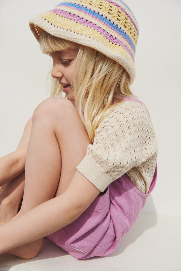 Gestrickter Sommerhut aus weicher Bio-Baumwolle für Kinder.