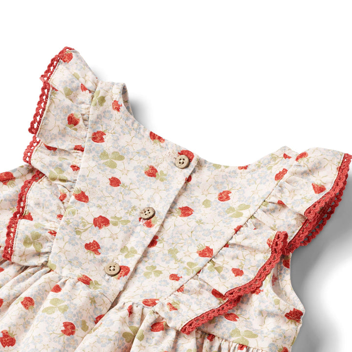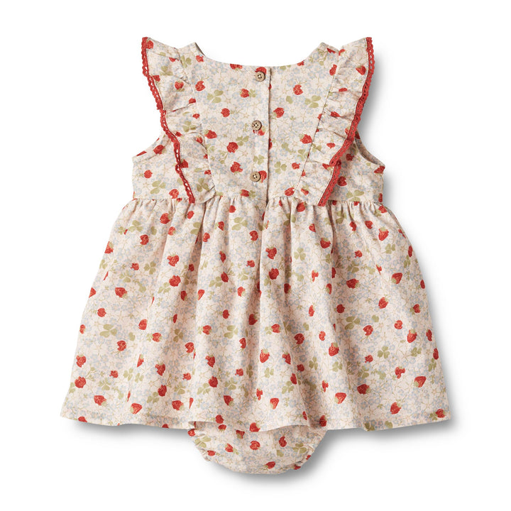 Die Anzugkleider von Wheat sind sowohl hübsch als auch bequem zu tragen und sich darin zu bewegen. Der Kleideranzug ist praktisch, da er eine Kombination aus einem locker sitzenden Kleid und einem klassischen Body darunter ist. Das Kleid hat einen schmeichelhaften Schnitt mit Raffungen, die dem Kleid ein schönes Volumen verleihen. Es hat einen Knopfverschluss am Rücken, damit du dein Baby leichter anziehen kannst. Der Body hat unten Druckknöpfe, die den Zugang zur Windel deines Babys erleichtern.
