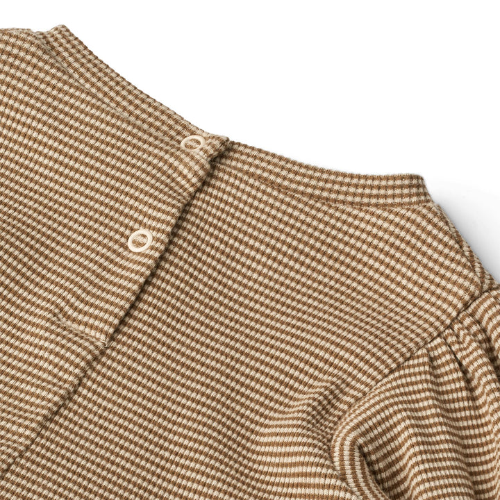 Das süße Kleid von Wheat hat eine lockere Passform, damit es für dein Kleinkind einfach und bequem zu tragen ist. Das Kleid hat einen schmeichelhaften Schnitt mit Raffungen, die dem Kleid ein schönes Volumen verleihen. Das Kleid ist perfekt für die Herbst- und Wintermonate und lässt sich leicht mit einer Leggings darunter und einer Strickjacke oder einem Strickteil darüber stylen. Die Kleider sind in wunderschönen Farben und mit handgezeichneten Prints erhältlich, die vom hauseigenen Designteam von Wheat entworfen wurden.