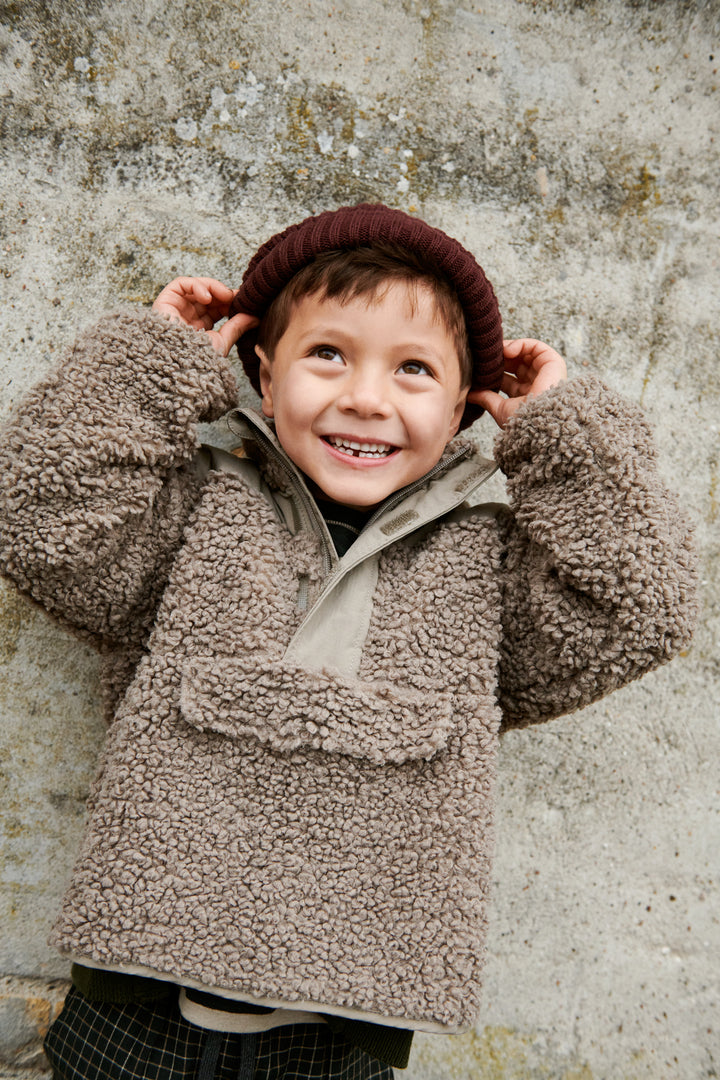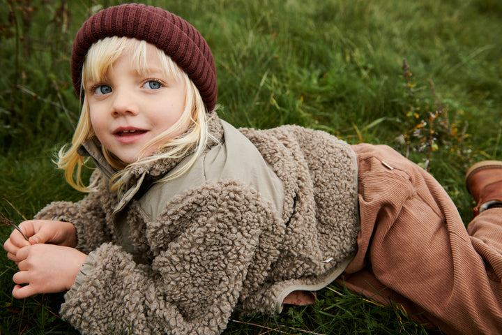 Die Wheat Teddyjacken sind aus weichem und leichtem, recyceltem Material, in dem sich dein Kind bequem bewegen und spielen kann. Die Jacke kann als kuschelige Schicht im Haus oder als Übergangsbekleidung verwendet werden und ist perfekt für Kindergarten und Schule, wenn dein Kind eine leichtere Outdoor-Bekleidung braucht.