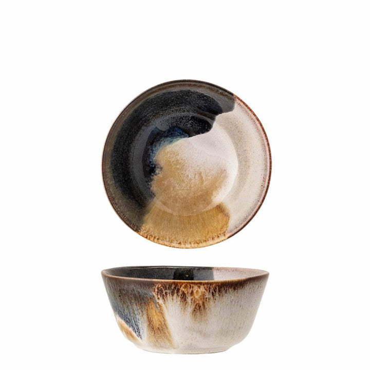 Die Jules Schale von Bloomingville ist ein wunderschönes handgefertigtes Stück aus Steingut mit einer einzigartigen mehrfarbigen Glasur. Mit dieser kunstvollen Kombination aus Currytönen gemischt mit tiefem Ozeanblau können Sie einen Hauch von Kunst auf Ihren Tisch bringen. Fasst 300 ml. Spülmaschinenfest und mikrowellengeeignet.