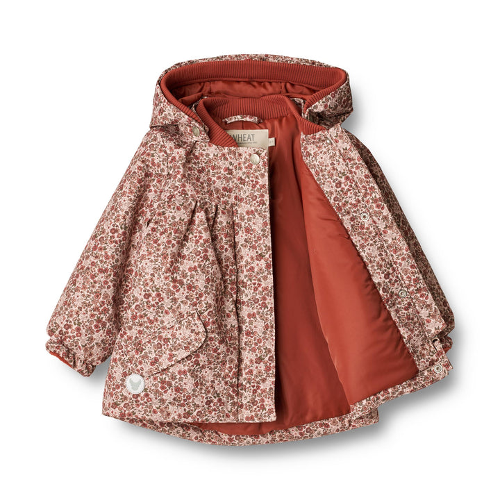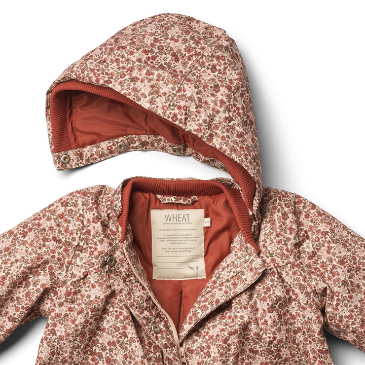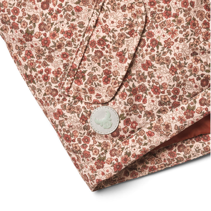 Die Jacke hat viele praktische Details wie eine abnehmbare und verstellbare Kapuze, einen Rippkragen und einen verdeckten Reißverschluss. Sie ist in schönen Farben und mit handgezeichneten Prints erhältlich, die vom hauseigenen Designteam von Wheat entworfen wurden.