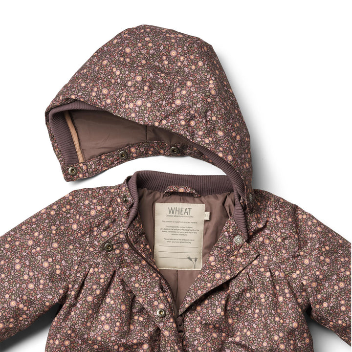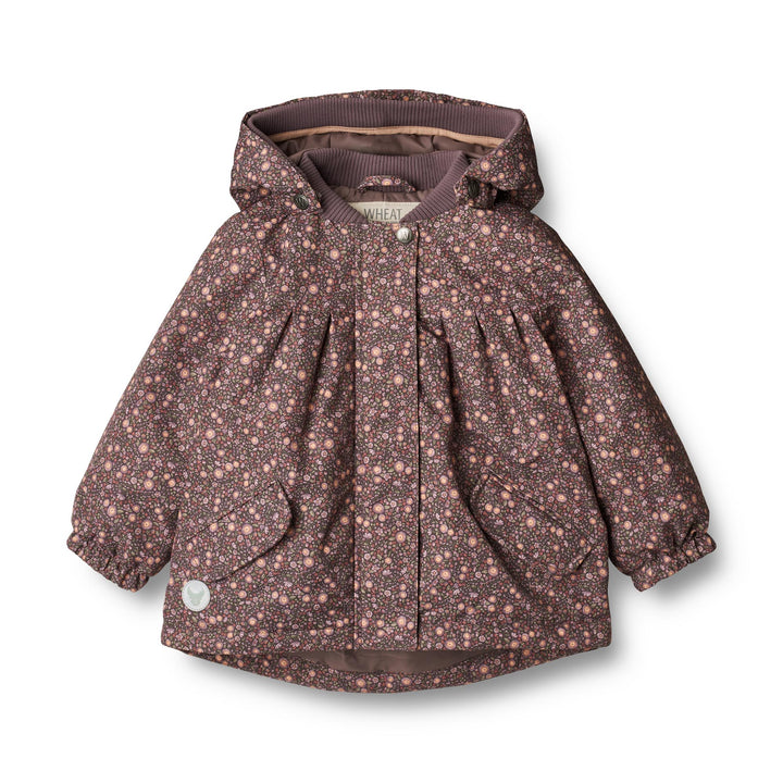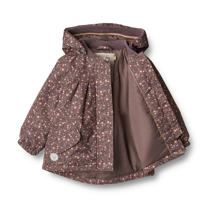Die Jacke hat viele praktische Details wie eine abnehmbare und verstellbare Kapuze, einen Rippkragen und einen verdeckten Reißverschluss. Sie ist in schönen Farben und mit handgezeichneten Prints erhältlich, die vom hauseigenen Designteam von Wheat entworfen wurden.