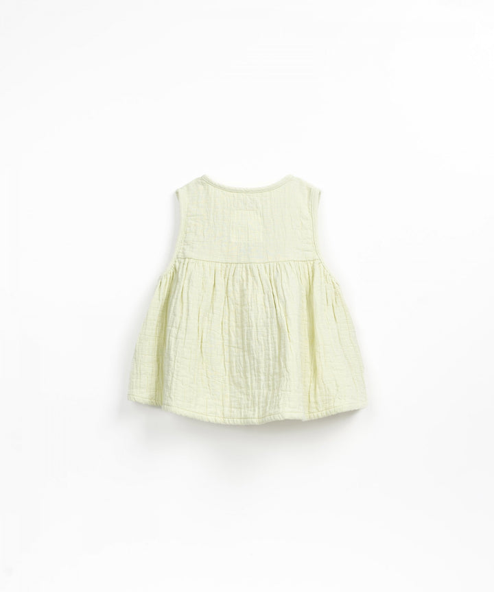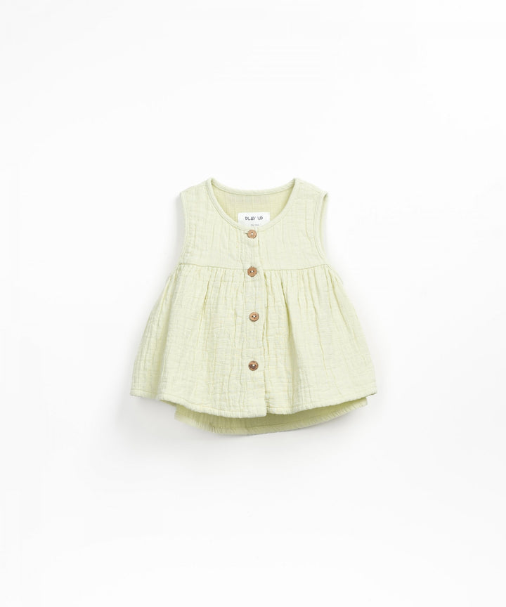 Dieses Oberteil aus Bio-Baumwolle hat einen Rundhalsausschnitt und eine Frontöffnung mit dekorativen Kokosnussknöpfen am Saum.
