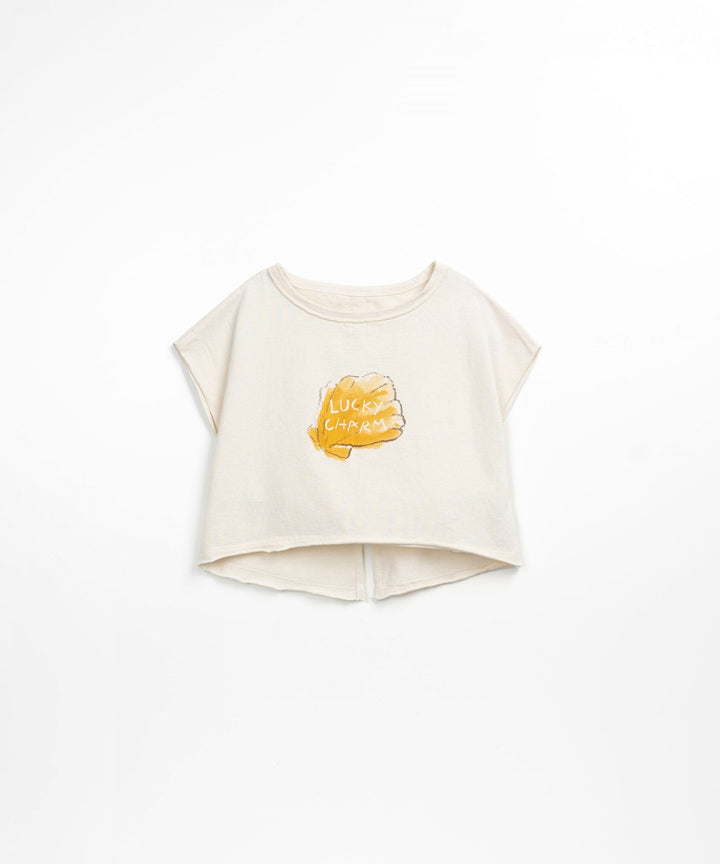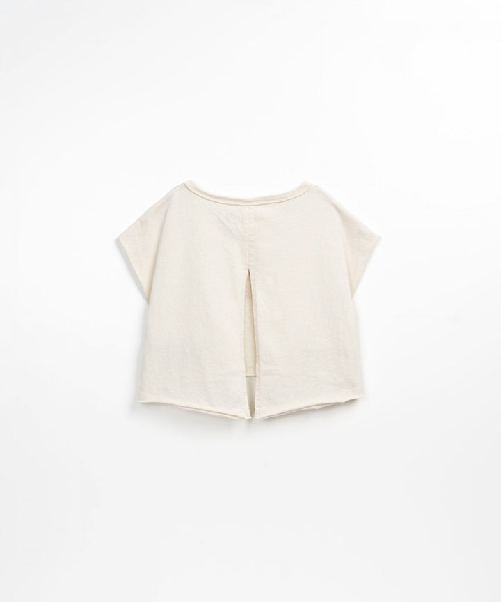 Dieses T-Shirt aus Bio-Baumwolle und recycelter Baumwolle hat einen weiten Halsausschnitt und überschnittene Schultern, ein Muster auf der Brust und einen offenen Rücken. Dieser Artikel bietet einen zusätzlichen UV-Schutz, so dass Kinder die Sonne sicher genießen können.