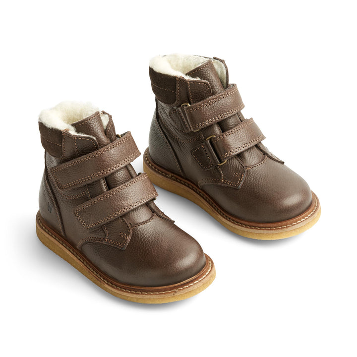 Schöne wollgefütterte Stiefel mit hohem Schaft und Klettverschluss für dein Kind.